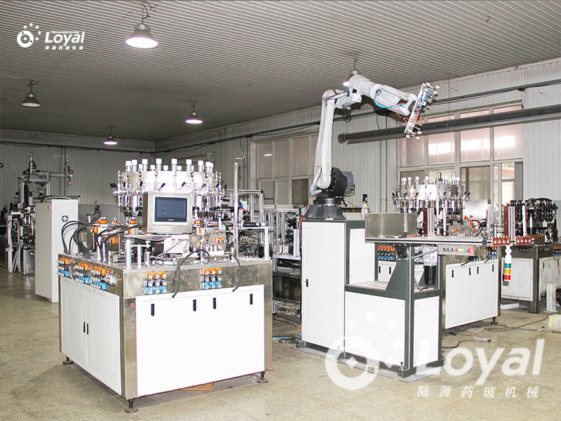 西林瓶生產(chǎn)線(xiàn)包括:自動(dòng)上管、自動(dòng)成型、經(jīng)機(jī)械手轉(zhuǎn)換至前端檢測(cè)線(xiàn)(也叫生產(chǎn)管控)、檢測(cè)線(xiàn)檢測(cè)的項(xiàng)目:1、瓶口內(nèi)外徑 2、瓶身長(zhǎng)短 3、瓶身外徑 4、瓶口邊厚 5、瓶底內(nèi)凹尺寸檢測(cè);經(jīng)檢測(cè)后的合格品再用機(jī)械手夾盤(pán)轉(zhuǎn)換至退火爐網(wǎng)帶上,經(jīng)高溫減除應(yīng)力后再降溫,通過(guò)氣動(dòng)吸盤(pán)將回火后的小瓶轉(zhuǎn)換至后端檢測(cè)線(xiàn),后端檢測(cè)(也是重檢也叫終檢),經(jīng)后端拍照檢測(cè)項(xiàng)目 -
